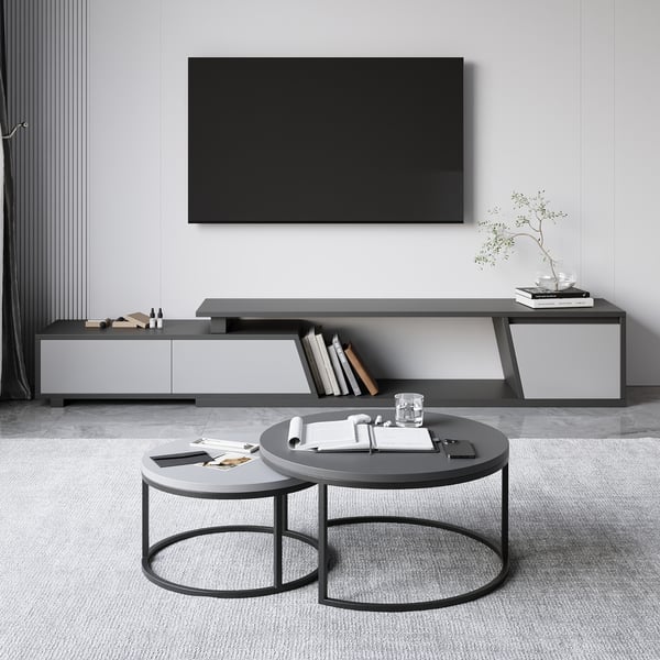 Ensemble meuble TV extensible gris et table basse emboîtable Fero