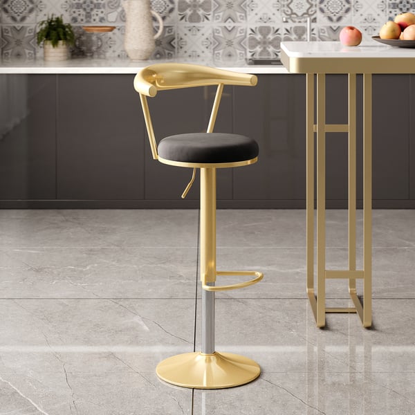 Tabouret de bar pivotant 4 pièces, îlot de cuisine, dossier incurvé, velours beige, hauteur réglable, doré